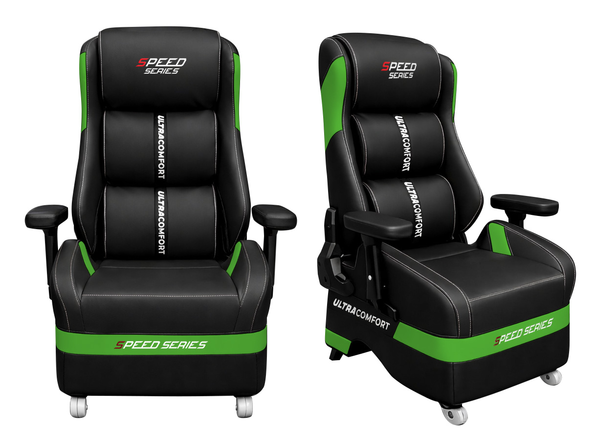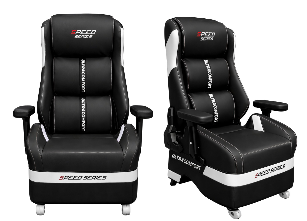💎 Da PU cao cấp & Đường chỉ may thủ công: Toàn bộ bề mặt được bao phủ bởi lớp da PU thế hệ mới, chống bám bẩn và cực kỳ thân thiện với làn da. Các chi tiết thêu chữ "Ultra Comfort" chạy dọc thân ghế là bảo chứng cho sự thoải mái tối thượng.